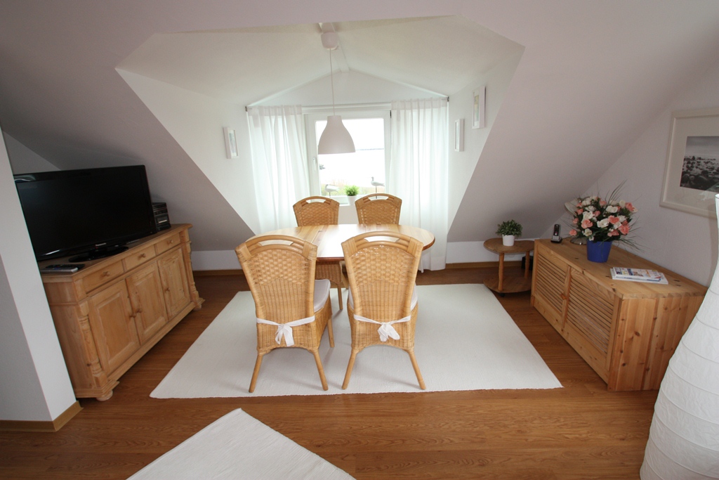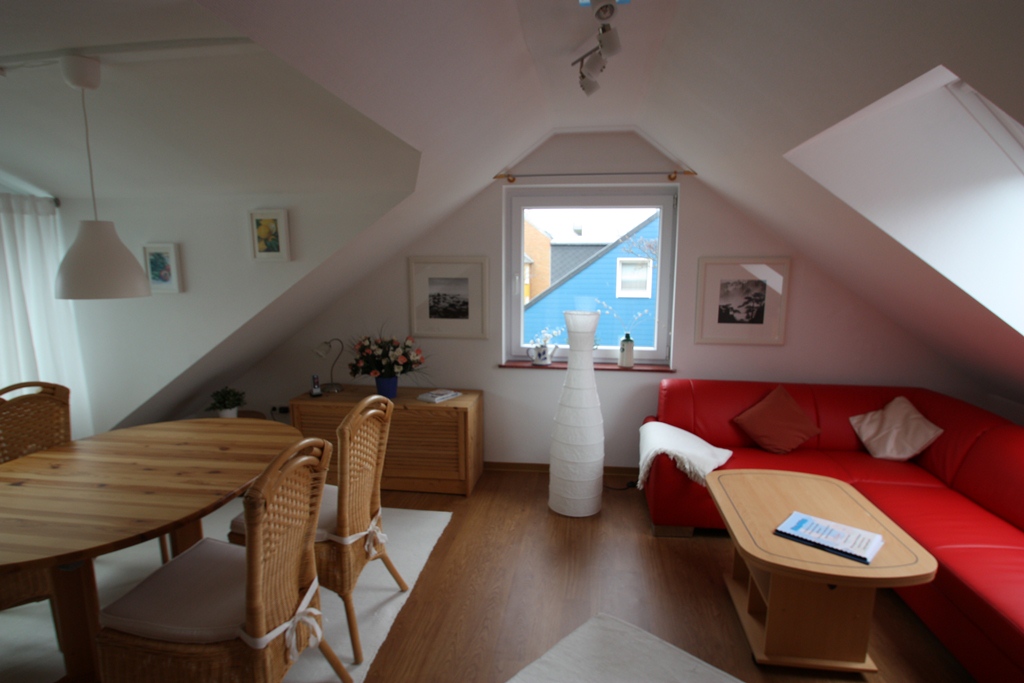 Die Dreiraumwohnung befindet sich im Unterland in ruhiger Lage. Die Größe beträgt ca. 59,3 qm. Belegung bis 5 Personen. Sie besteht aus einem Schlafzimmer für zwei Personen, einem weiteren Zimmer mit einem Bett, ein Duschbad, ein Flur und einer voll ausgestatteten Küche, ein großes Wohnzimmer mit einer Schlafcouch für 2 Personen. Terrassenbenutzung für alle Gäste des Hauses. Strandkorb vorhanden, alle Apartments mit Meerblick, Hunde erlaubt.