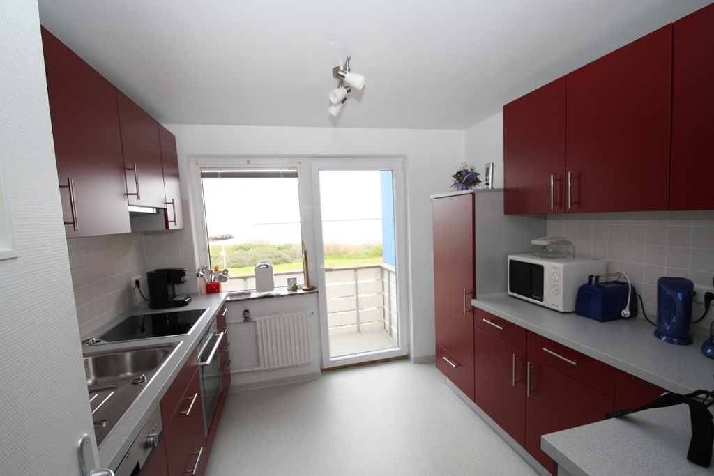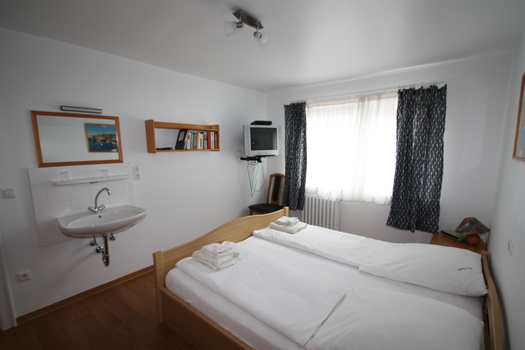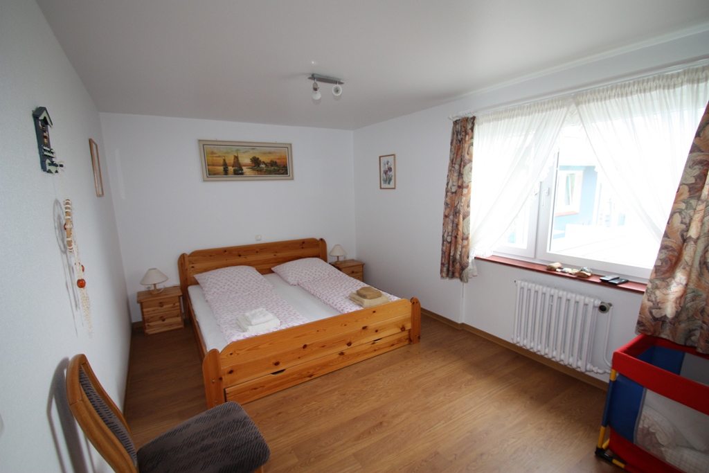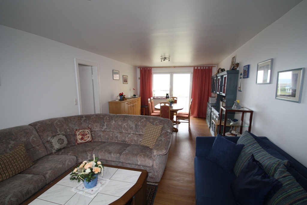 Die Dreiraumwohnung befindet sich im Unterland in ruhiger Lage. Die Größe beträgt ca. 90 qm. Sie besteht aus zwei Schlafzimmern für je zwei Personen, ein Duschbad, ein Flur und einer voll ausgestatteten Küche mit Geschirrspüler u. Balkon, ein großes Wohnzimmer mit Balkon und zwei ausziehbaren Schlafcouchen für je zwei weitere Personen. Terrassenbenutzung für alle Gäste des Hauses. Strandkorb vorhanden, alle Apartments mit Meerblick, Hunde erlaubt.